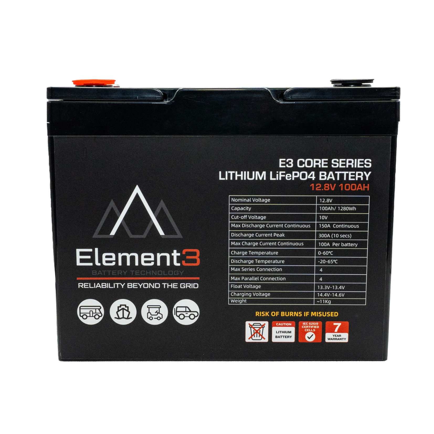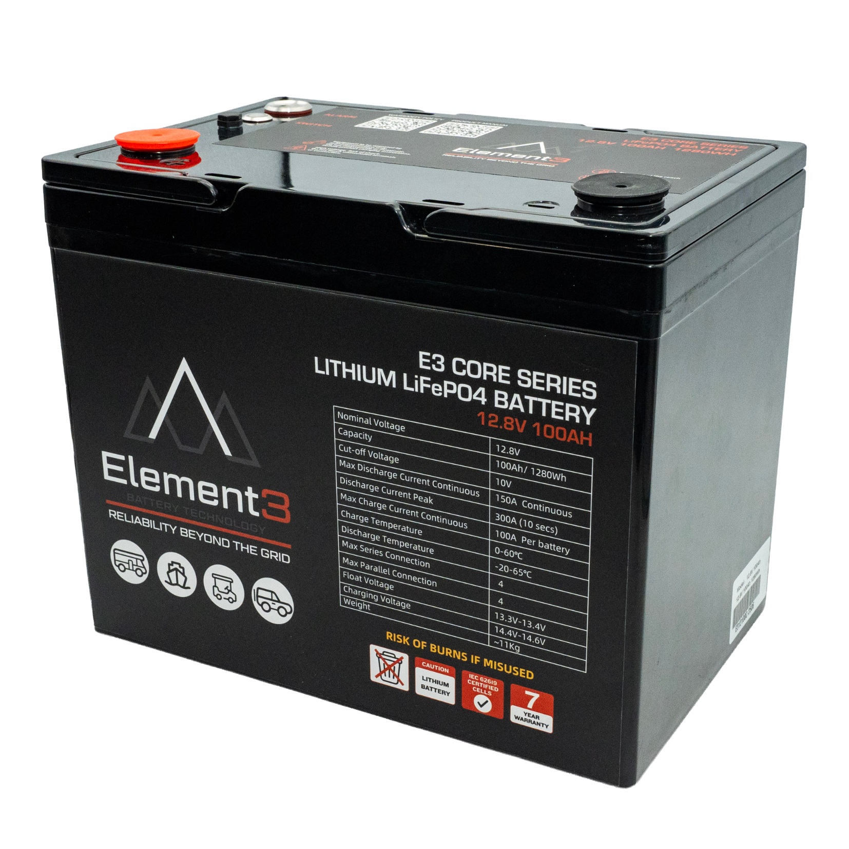 • All Element3 lithium batteries come with a 7-year (84 months) warranty.