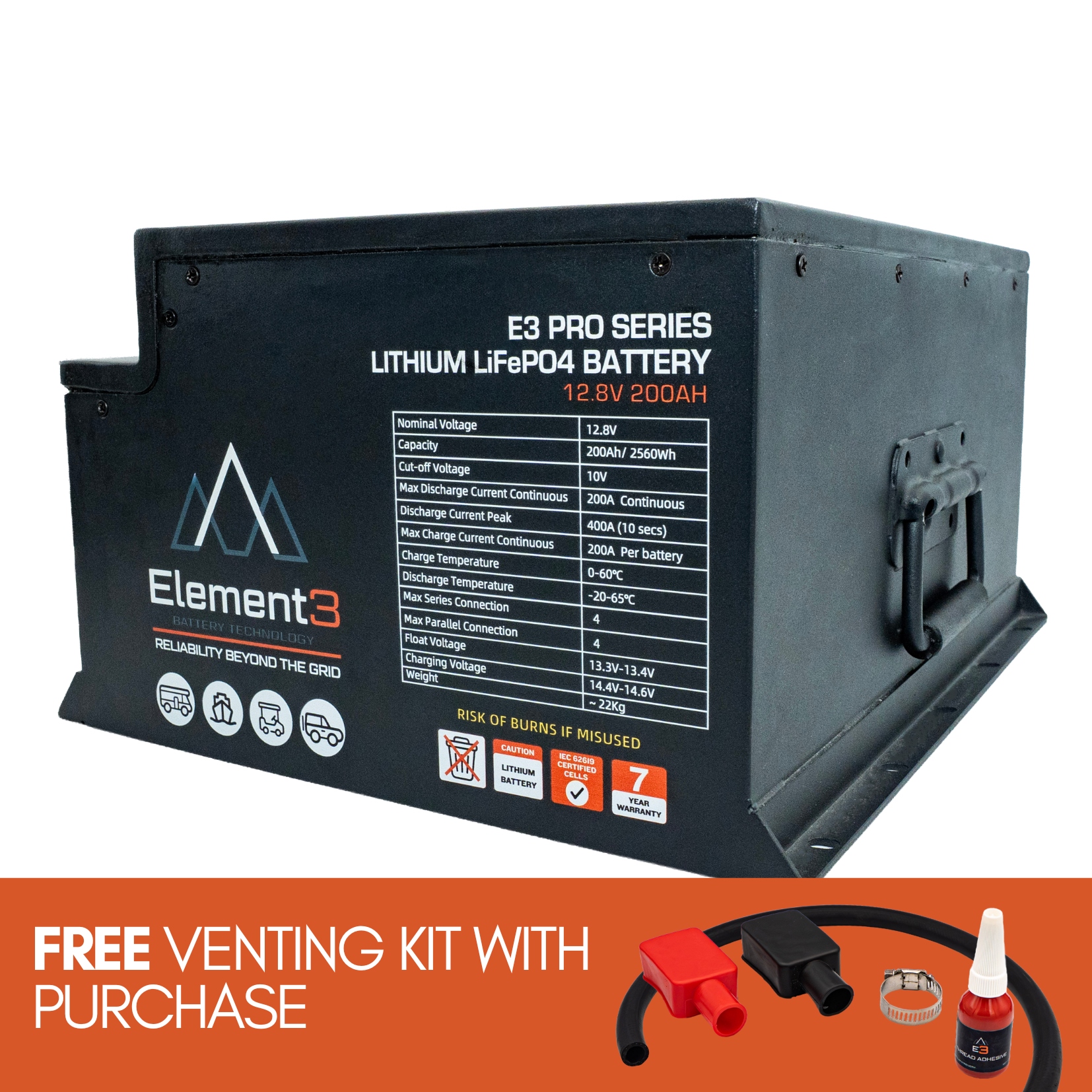 • All Element3 lithium batteries come with a 7-year (84 months) warranty.