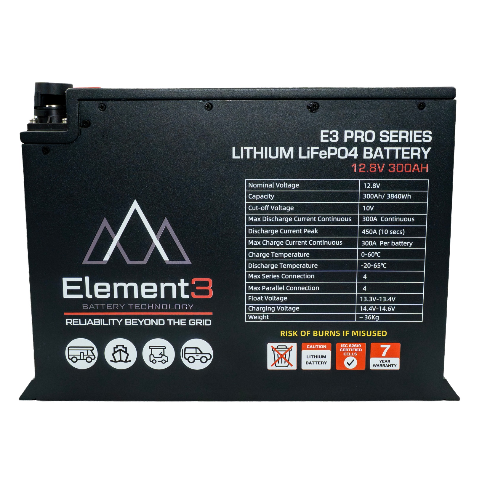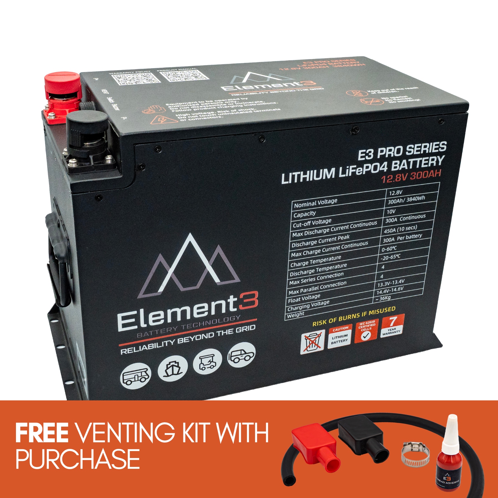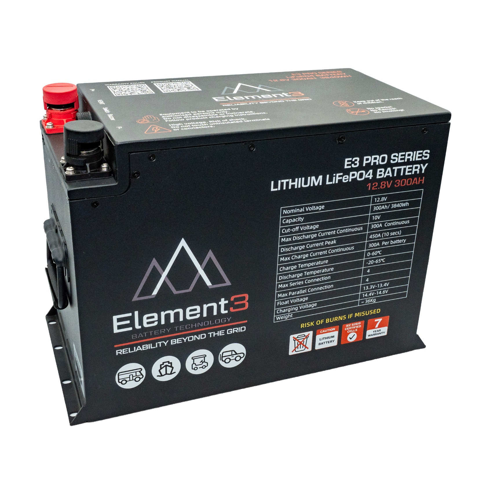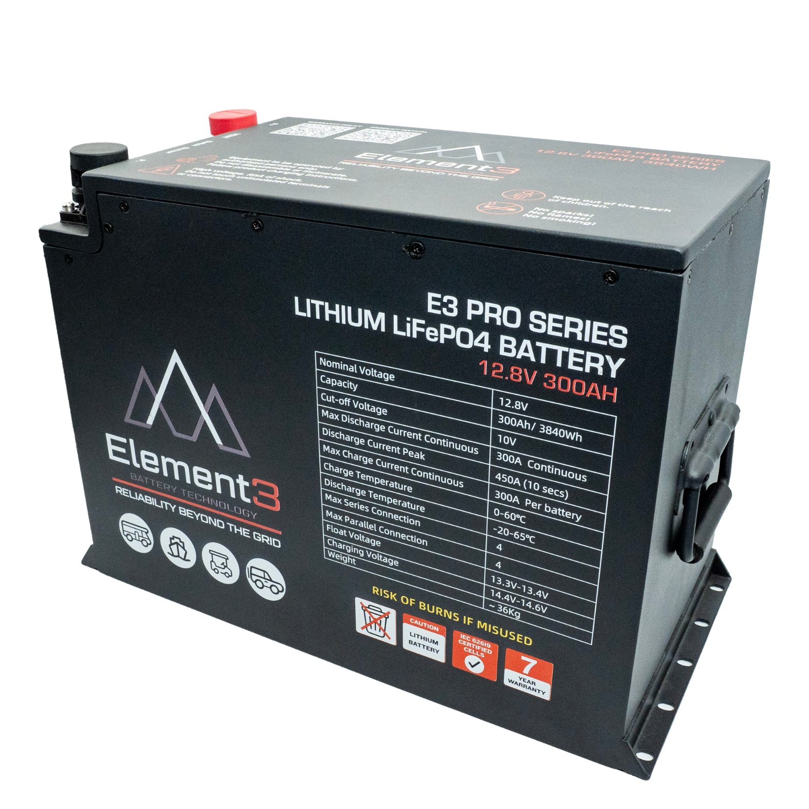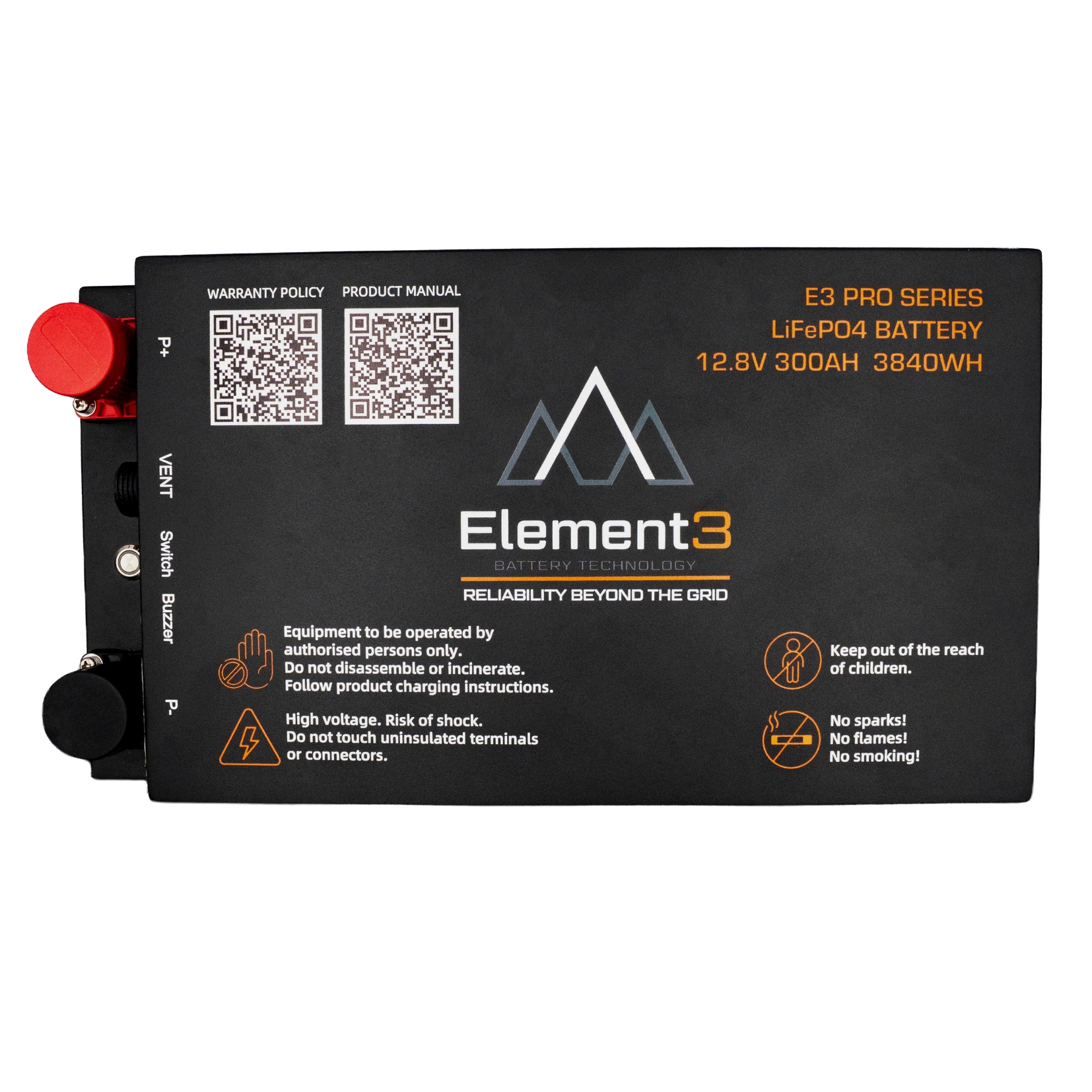 The Element3 300AH Pro Series lithium battery gives you the easiest AS3001 compliant installation on the market. The Pro Series features a battery enclosed in a sealed powder-coated steel box, with ventilation output to comply with AS3001 installation laws for lithium batteries inside the habitable area of connectable electrical installations. It also includes high & low temperature, high & low voltage and overcurrent protection, as mandated by AS3001.2:2022 Australian installation standards. Multiple mounting hole options provide ease of installation, and the Pro Series is stackable (2 units maximum per stack).