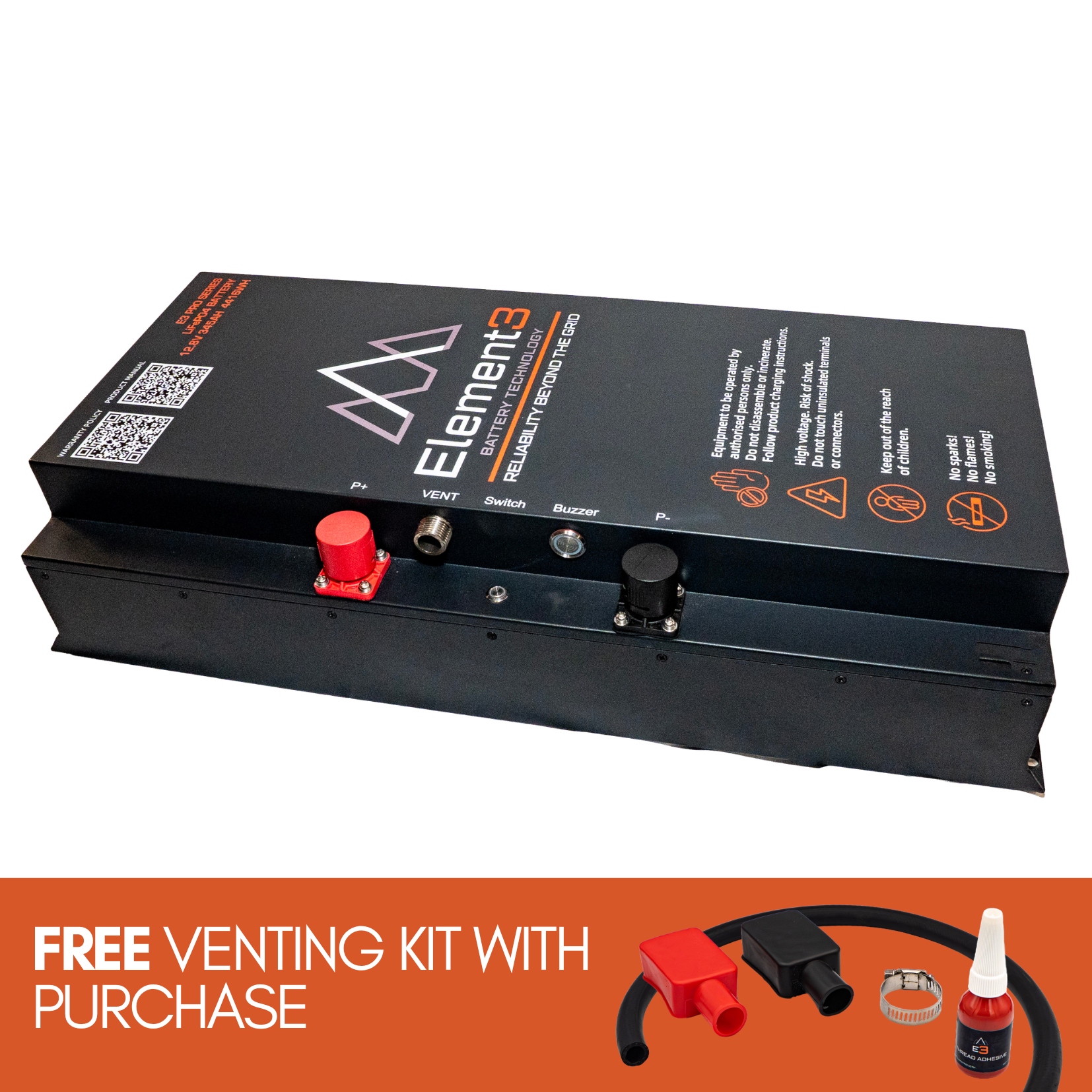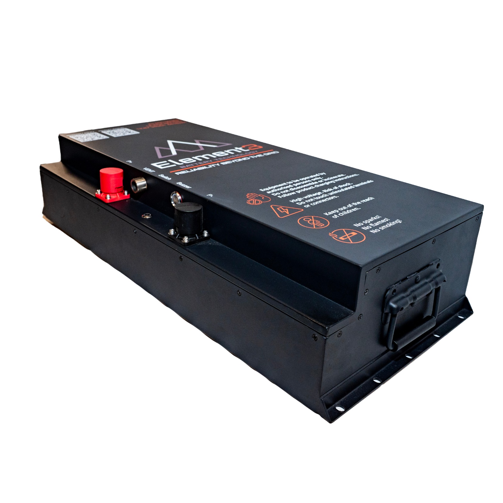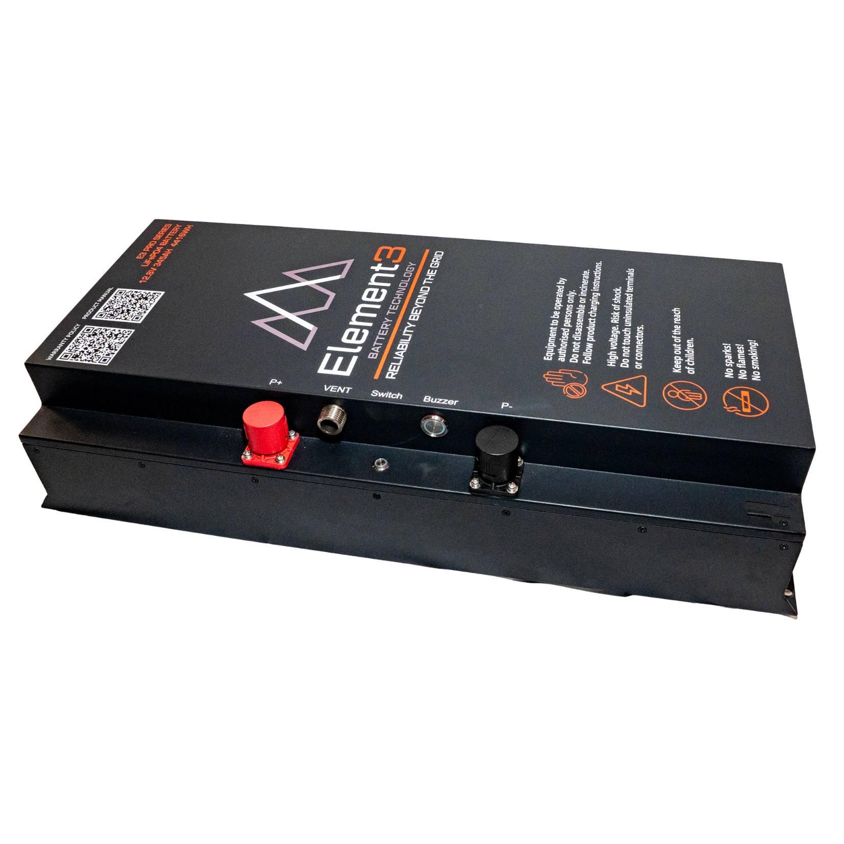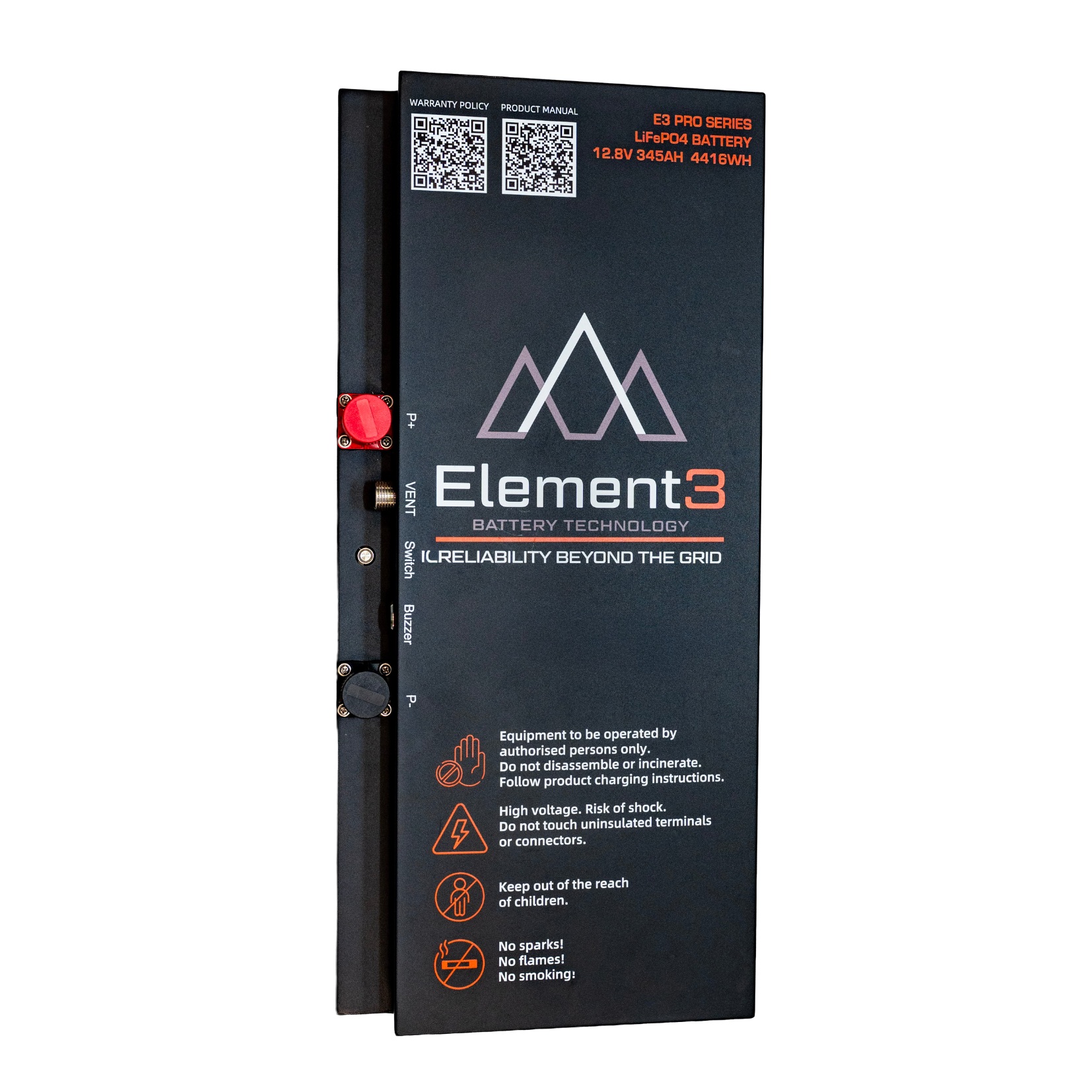 The Element3 345AH Slimline Pro Series lithium battery gives you the easiest AS3001 compliant installation on the market. The Pro Series features a battery enclosed in a sealed powder-coated steel box, with ventilation output to comply with AS3001 installation laws for lithium batteries inside the habitable area of connectable electrical installations. It also includes high & low temperature, high & low voltage and overcurrent protection, as mandated by AS3001.2:2022 Australian installation standards. Multiple mounting hole options provide ease of installation, and the Pro Series is stackable (2 units maximum per stack).