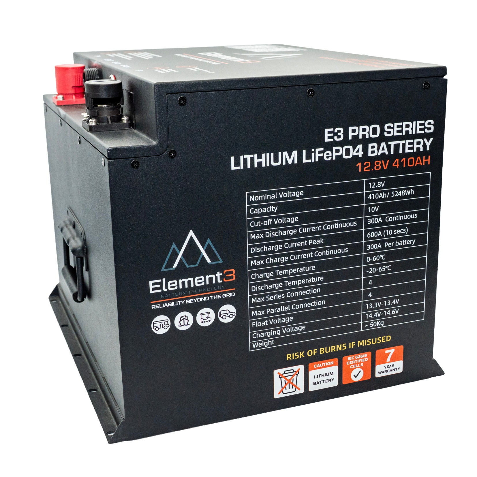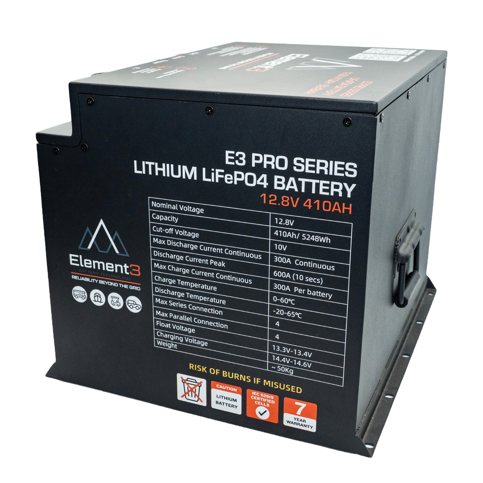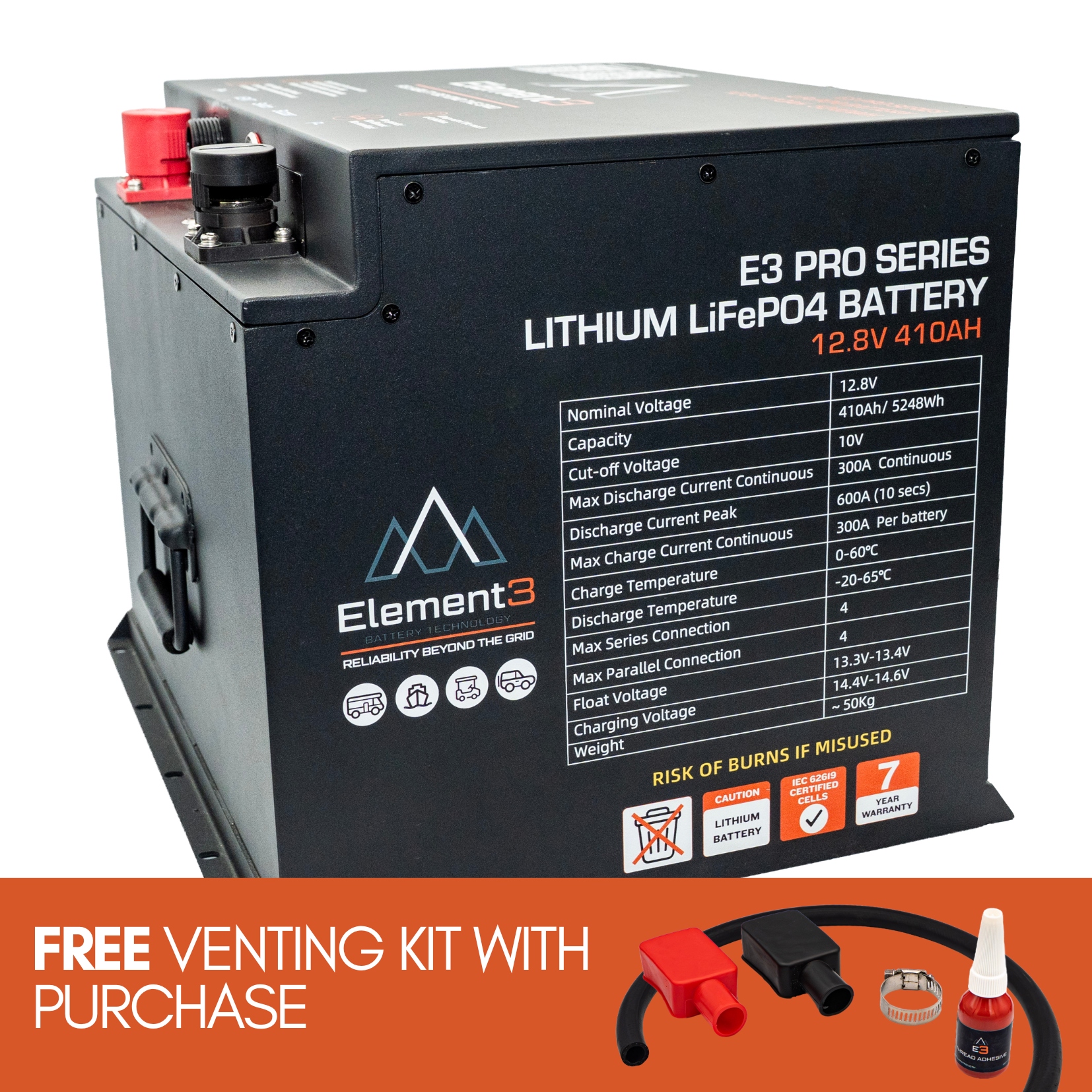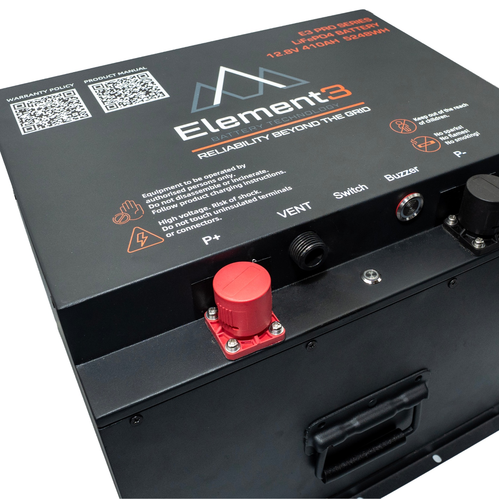 The Element3 410AH Pro Series lithium battery gives you the easiest AS3001 compliant installation on the market. The Pro Series features a battery enclosed in a sealed powder-coated steel box, with ventilation output to comply with AS3001 installation laws for lithium batteries inside the habitable area of connectable electrical installations. It also includes high & low temperature, high & low voltage and overcurrent protection, as mandated by AS3001.2:2022 Australian installation standards. Multiple mounting hole options provide ease of installation, and the Pro Series is stackable (2 units maximum per stack).