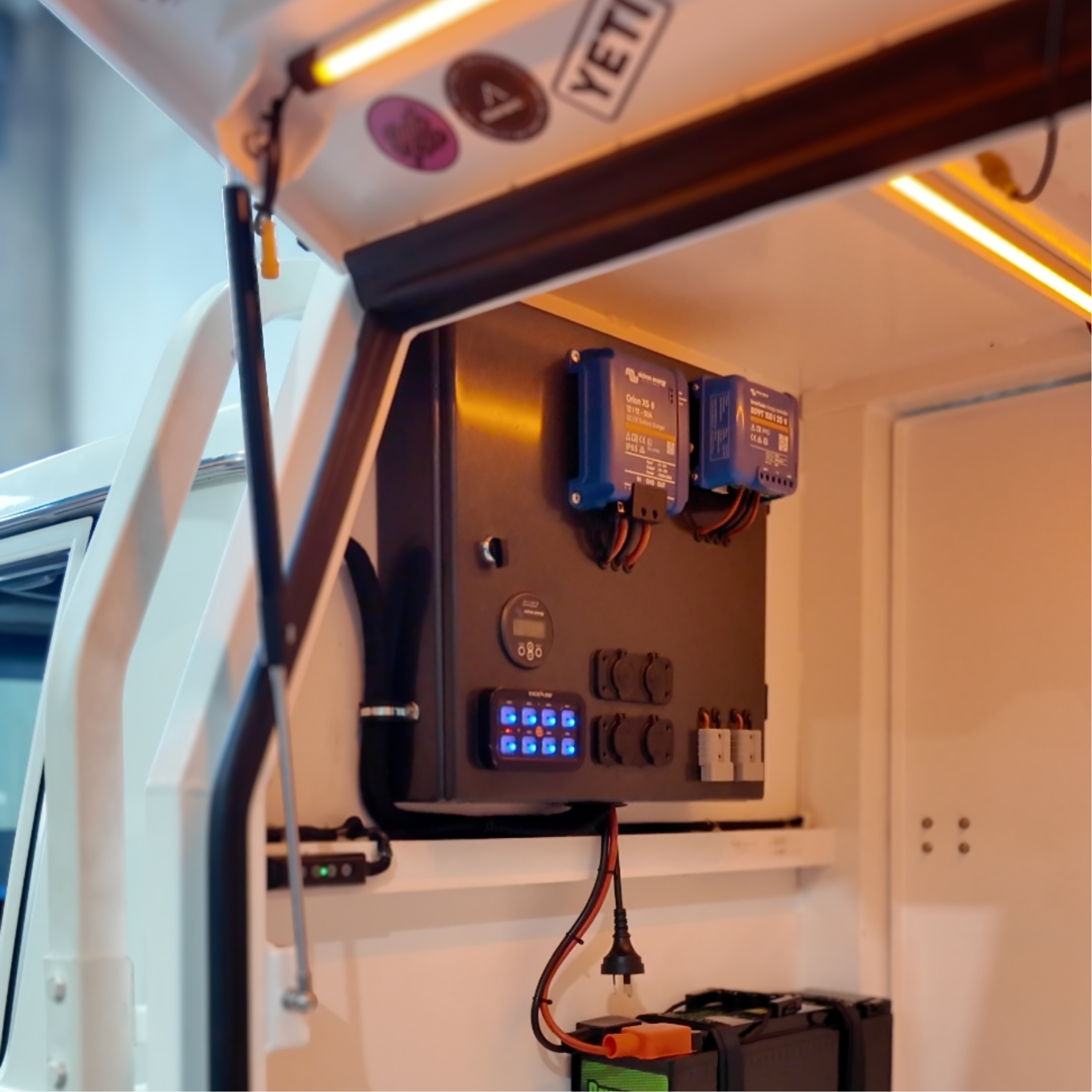 - 50A Victron DC Charger with Bluetooth connectivity for efficient alternator charging